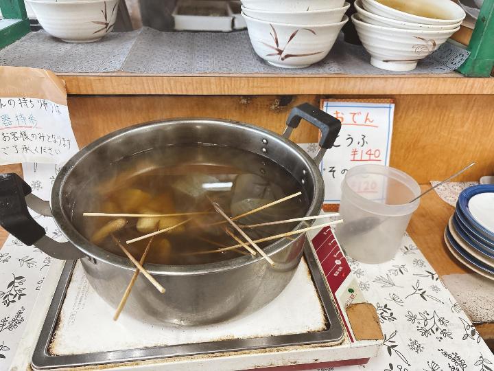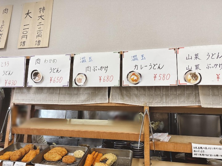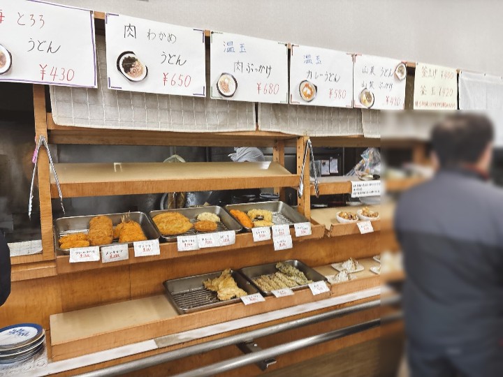 うどんだけでなく、天ぷらやおでんも並んでいます。