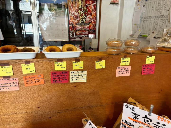 私が伺ったのは13時15分ごろでしたが、すでに種類が減っていて、カウンターの上には残りわずかのドーナツが並んでいました。