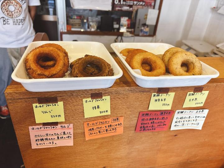 カウンターには、発酵ドーナツとオールドファッション、2種類の生地を使ったドーナツが並びます。