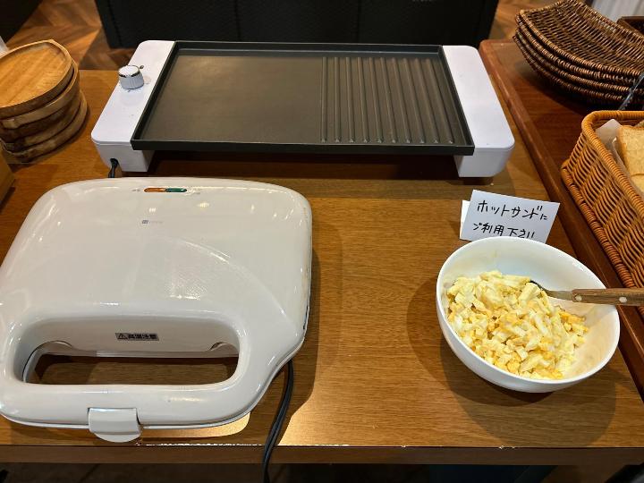 パンの種類がたくさんあって迷ってしまうのですが、嬉しいのがセルフでホットサンドが作れること。