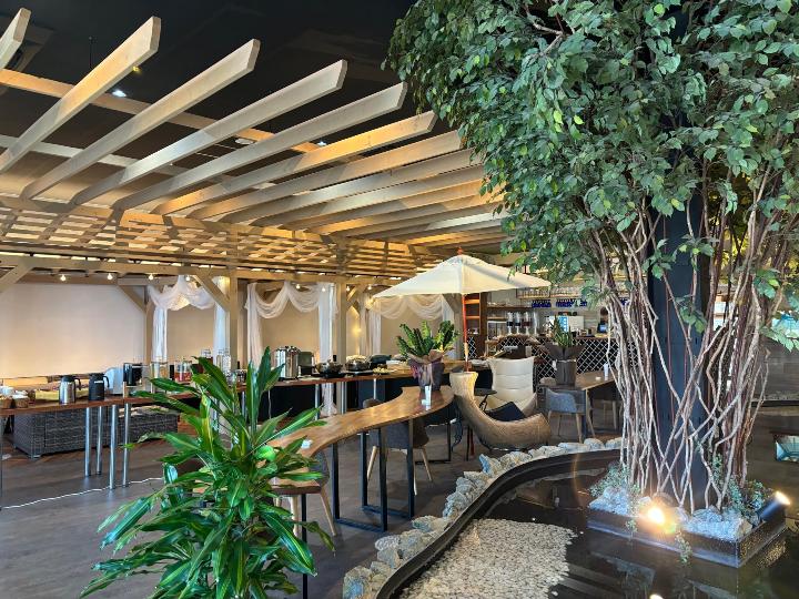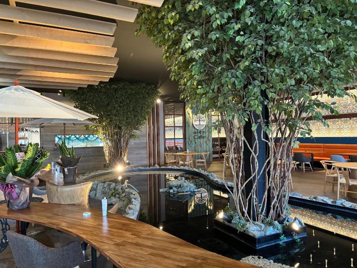 店内には池があり、水の流れる音が心地良く、とてもリッチでオシャレな雰囲気。