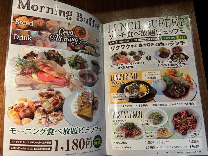 森の虹色Cafeのメニューはこのようになっています。(一部)