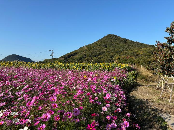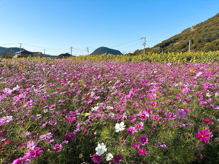 満開のコスモスとひまわりを眺めながら食べると、ひときわ美味しく感じられます。