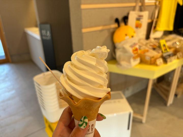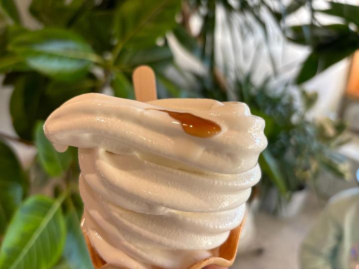 少し香ばしさがあり、黒蜜のような深みのある味わいがソフトクリームのやさしい甘さによく合っていました。