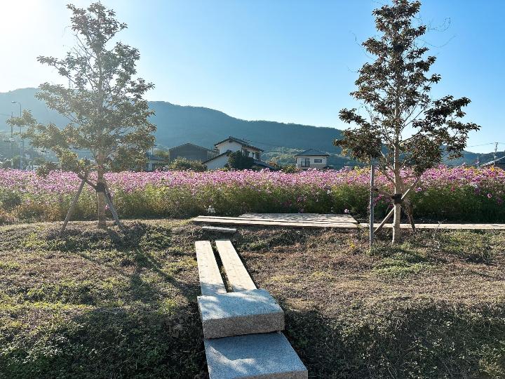 さらにひまわりも咲いていて、季節が混ざったような不思議な景色でしたが、見ていて気持ちが和らぎました。