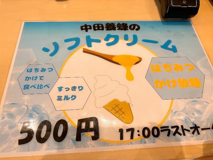 今回のお目当ては、「はちみつかけ放題ソフトクリーム(500円)」。
