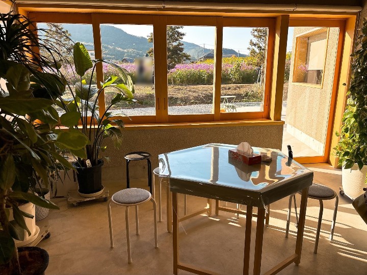 お店の前にはコスモス畑が広がり、ちょうど満開。