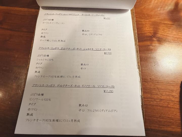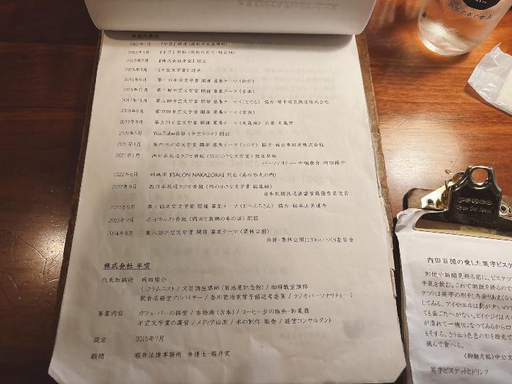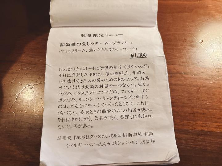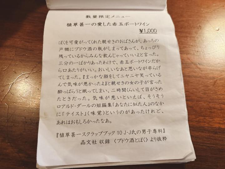 メニューを見ると活字がぎっしりで、まるで小説を読んでいるよう。