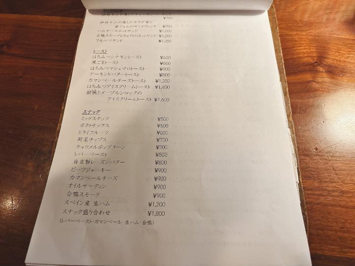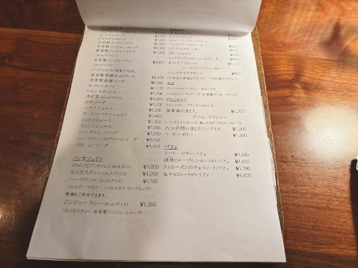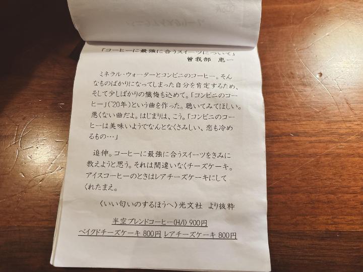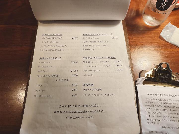 珈琲と本と音楽 半空のメニューはこのようになっています。(一部)