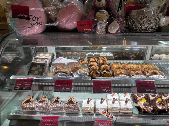 ショーケースにはカットケーキやパイ、プリン、マカロンなどが並んでいて、ホールケーキも豊富に用意されていました。