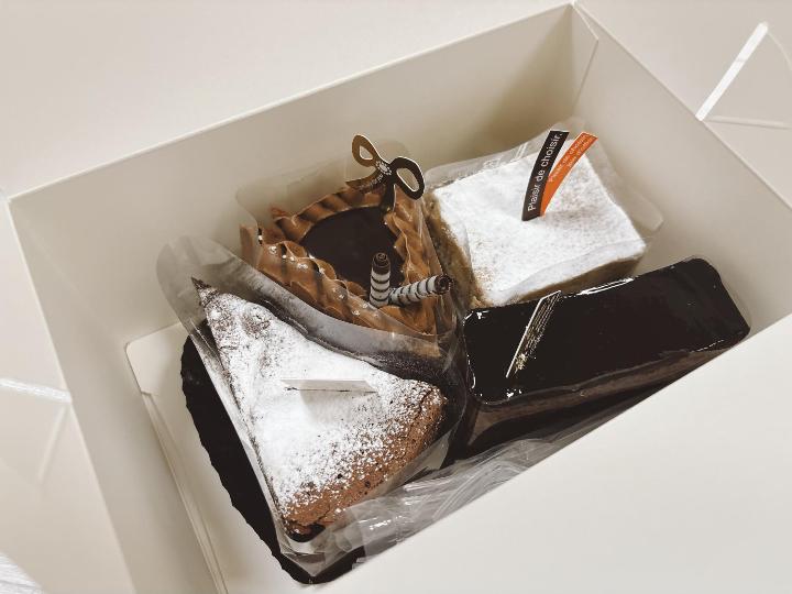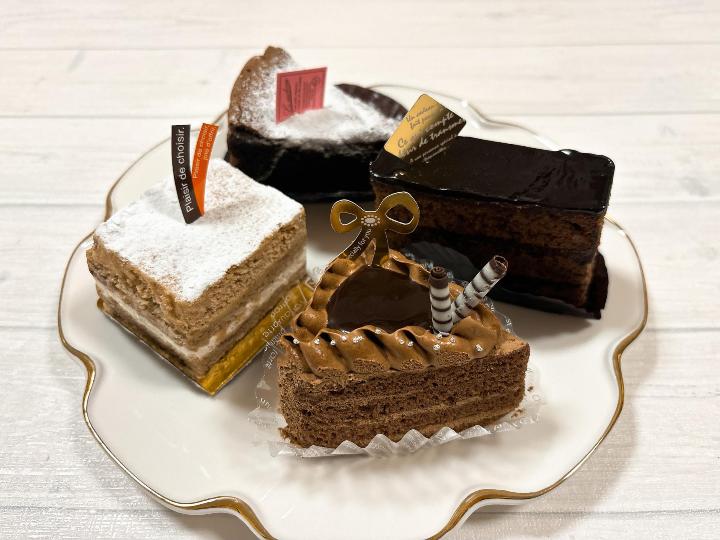 今回はショーケースの前で迷った結果、チョコレート系のケーキを4種類買ってみました。