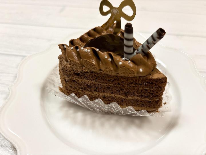 ショートケーキをチョコバージョンにしたようなケーキで、ふわっとしたスポンジに軽めのチョコクリームが合っています。