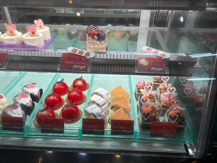 今回私は、夕暮れ時に訪れましたが、ショーケースには色とりどりのケーキがずらりと並んでいて、思わずじっと見入ってしまいました。