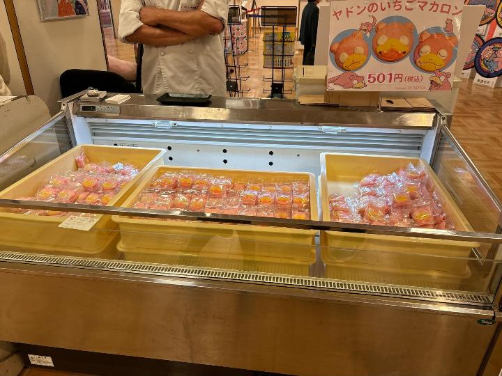 ピンク色のヤドンがそのままマカロンになっていて、思わず写真を撮りたくなるような見た目でした。