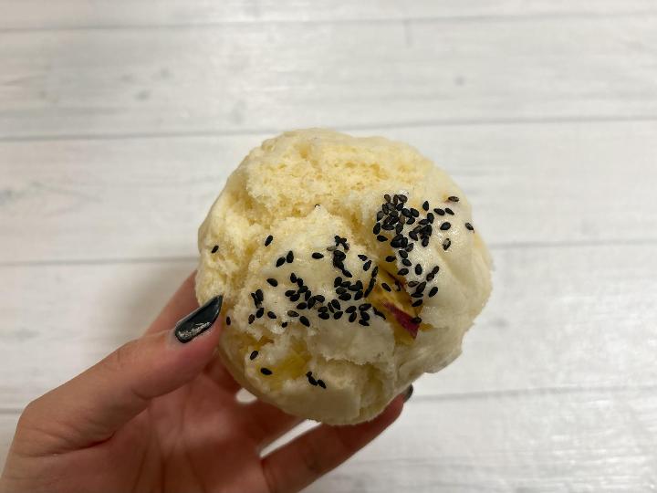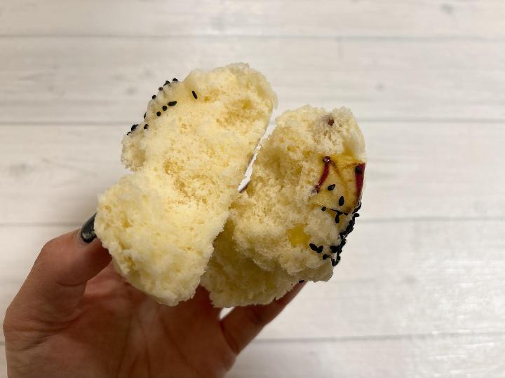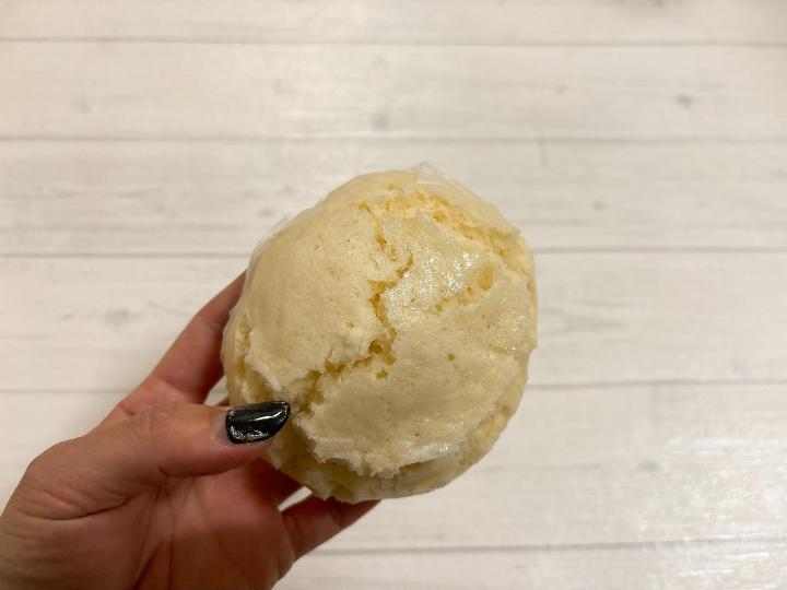 実際に食べてみると、生地がしっとり・もちもちしていて、口の中にやさしい甘さが広がります。