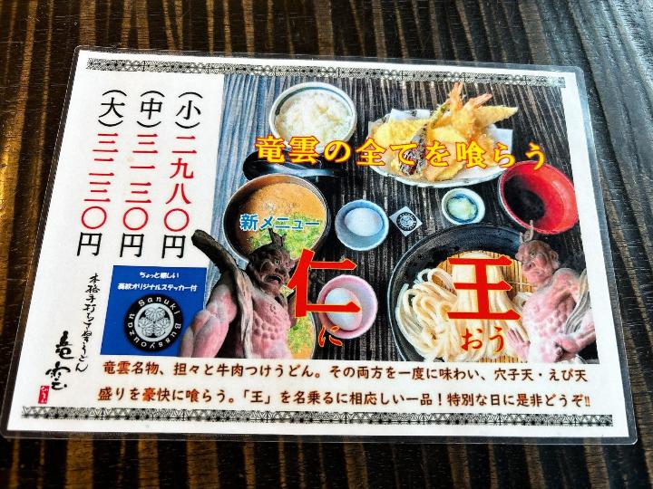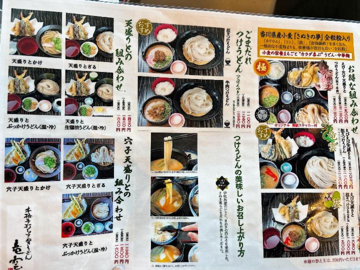 本格手打ちさぬきうどん竜雲のメニューはこのようになっています。(一部)