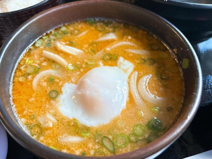 湯気を立てるお鍋がほかのテーブルへ運ばれてくるたびに心が揺れましたが、今回は「坦々つけうどん(税込1,100円)」をいただくことにしました。