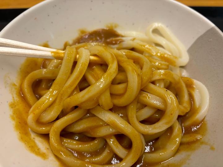 たくさん具が入っているカレーうどんも良いですが、こういうシンプルなタイプも出汁ととろみが楽しめて個人的には好きです。