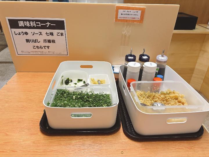ねぎ、てんかす、わかめなどありました。わかめがほとんど残っていませんでしたが(;´・ω・)わかめがあるのは嬉しい。