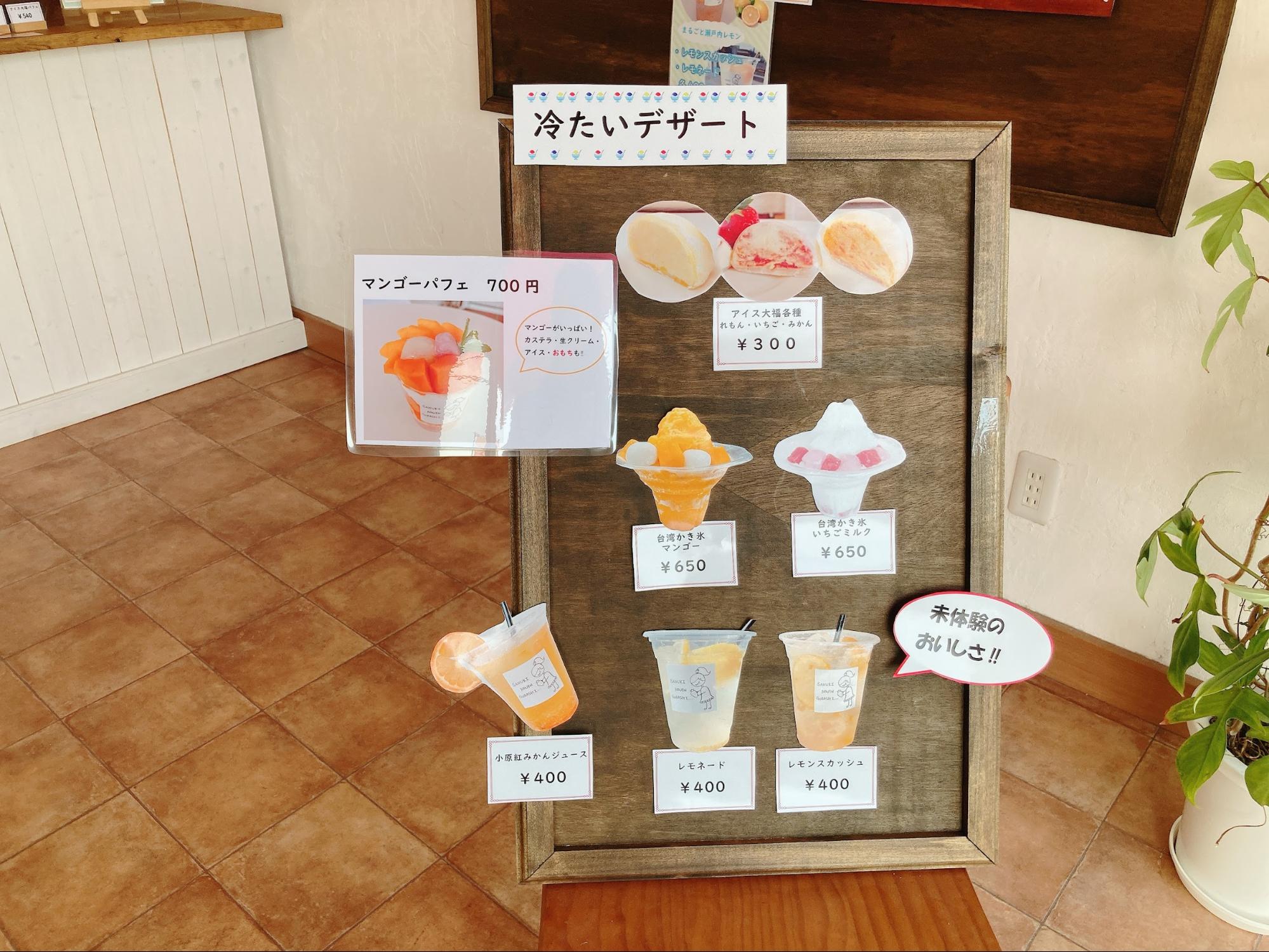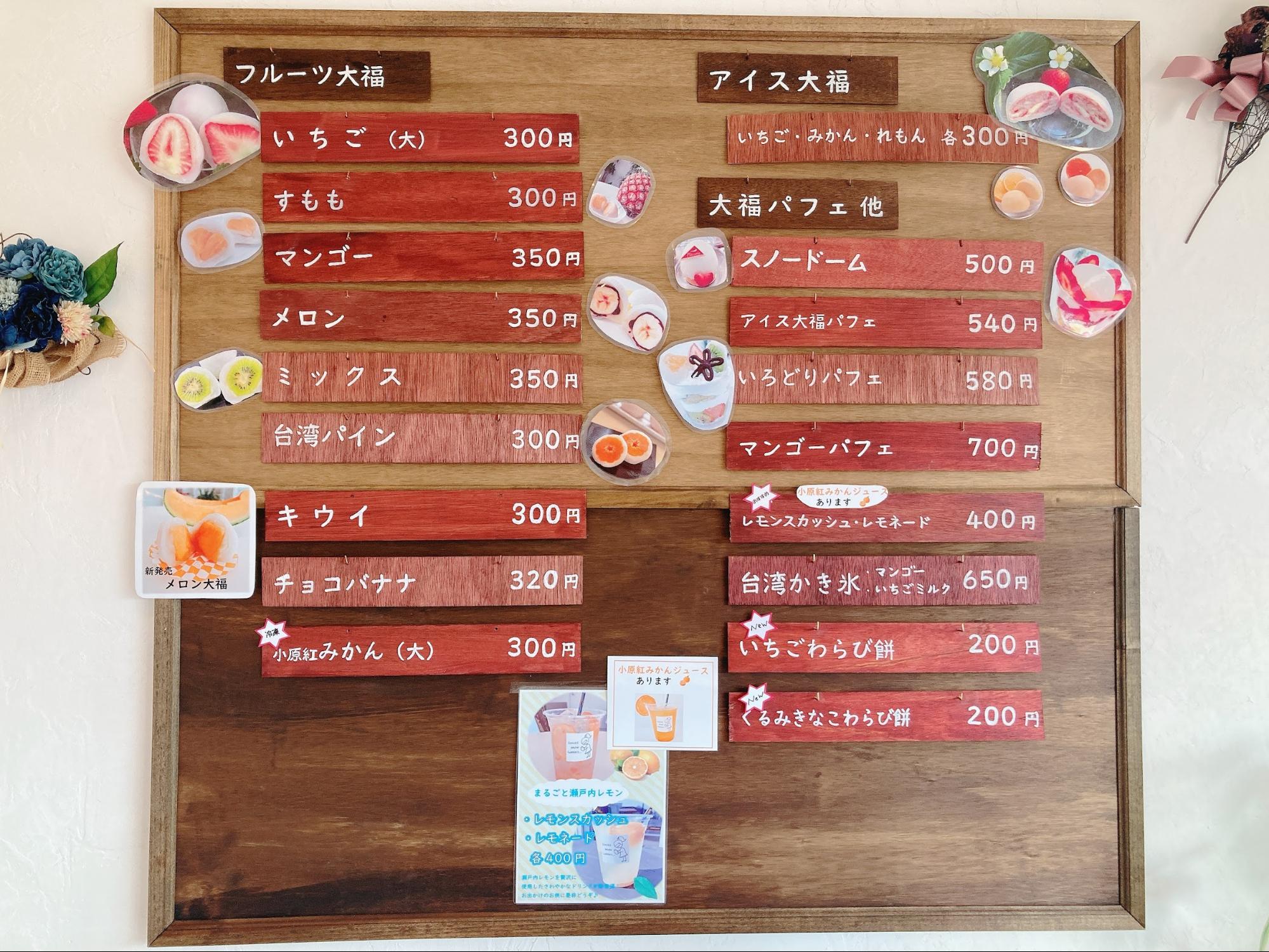 これから暑くなる季節に、美味しいアイス大福やパフェはいかがでしょうか。