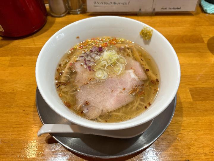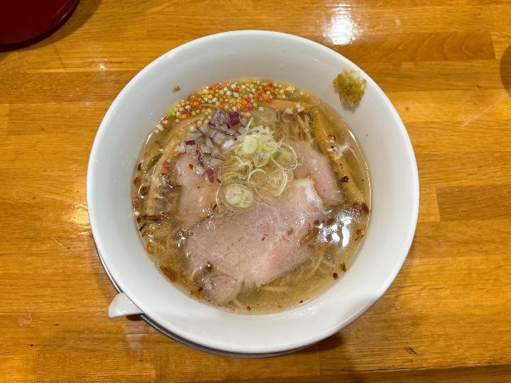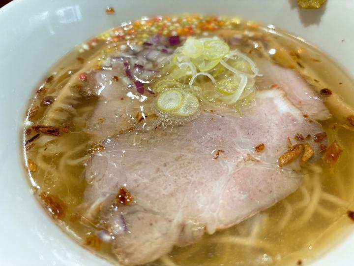 運ばれてきたしおラーメンは、まず見た目がとても美しいです。