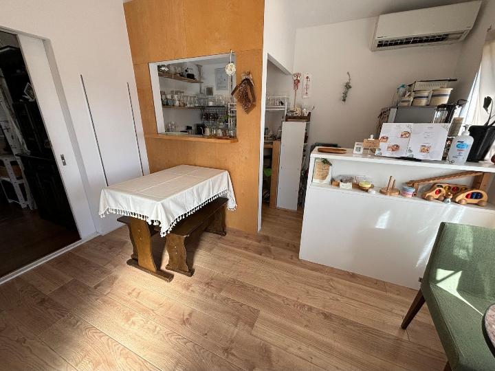 木の質感がやさしいテーブルやイスが並び、まるで友だちのお家におじゃましたような落ち着いた雰囲気です。