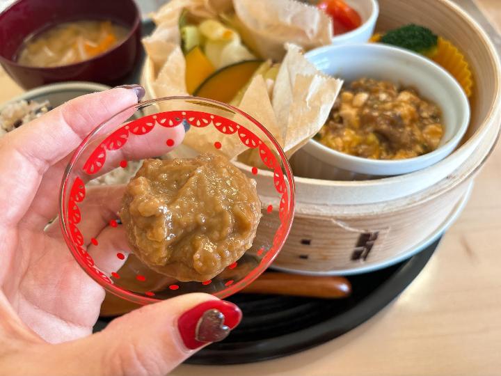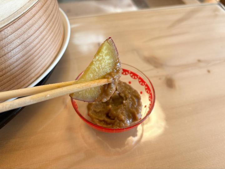 見た目は味噌のようですが、食べてみるとコクがあり、蒸し野菜と相性抜群でした。