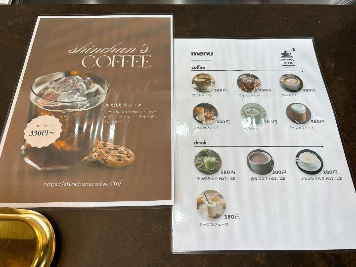 shinchans’ coffeeのメニューはこのようになっています。(一部)