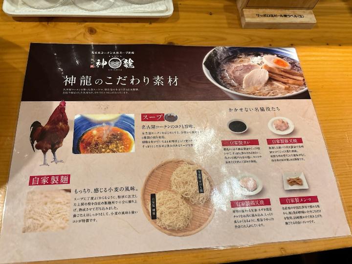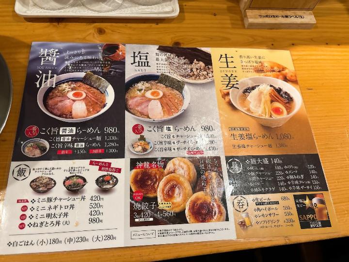 麺や神龍 紺屋町本店のメニューはこのようになっています。(一部)