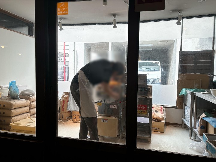 お店の前を通ると、ガラス越しに製麺している様子が見えます。
