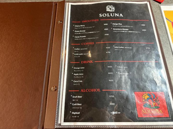 重機カフェSOLUNA(ソルナ)のメニュー