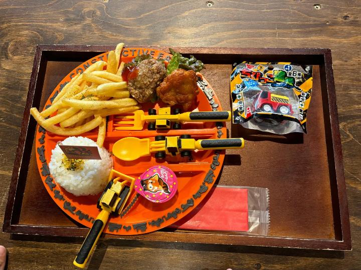 さらに、食器やカトラリーも重機デザインになっていて、見た目も楽しく、子どもたちのテンションが上がっていました。