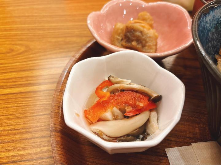 メインの丼に加えて、おばんざい2品、ごはん(大盛り無料)、味噌汁(おかわり自由)と、とても充実した内容です。