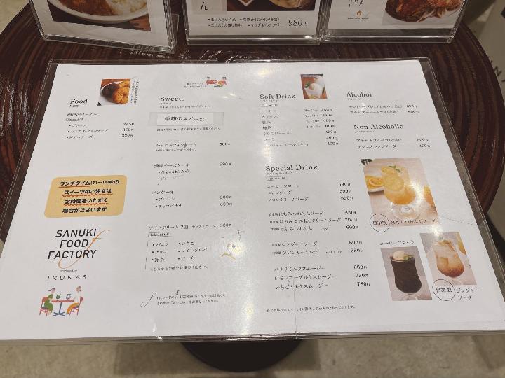 讃岐おもちゃ美術館shop・cafeのメニューはこのようになっています。(一部)