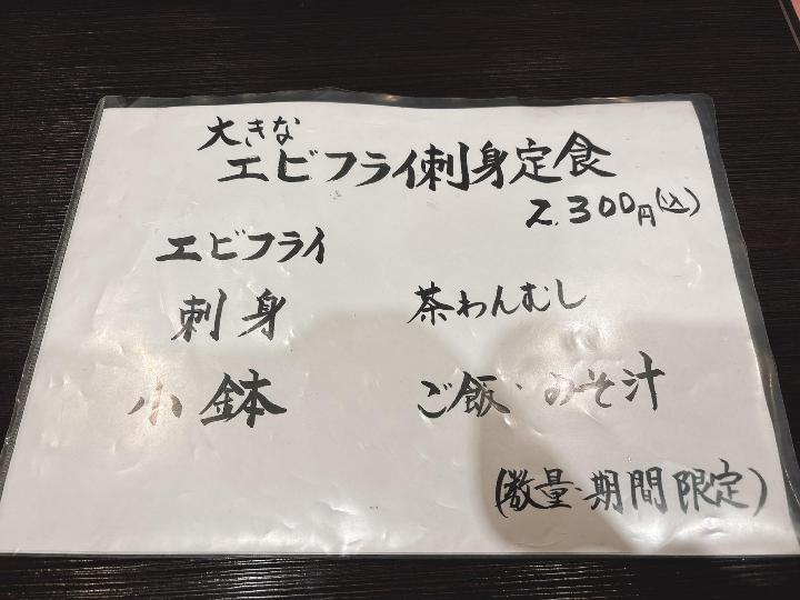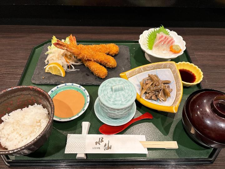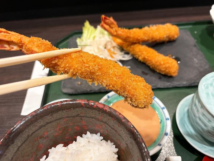 - 限定のエビフライ定食はボリューム満点