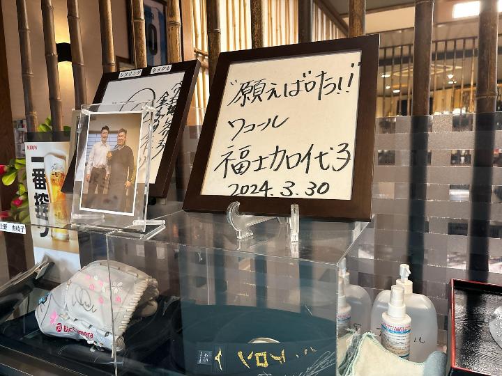 店内に入ると、野球選手などスポーツ関係のグッズやサインが飾られていて、にぎやかで親しみやすい空間です。