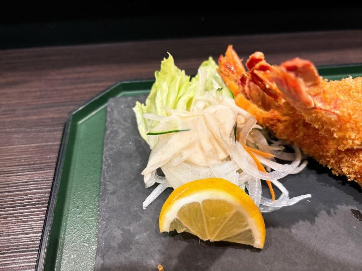 エビフライは衣がサクッとしていて、中のエビはしっかりとした食感で食べごたえがあります。