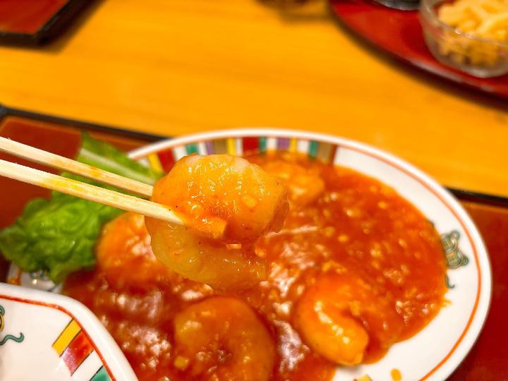 海老チリは大きくてプリッとした海老が入っていて見た目に食欲をそそります。