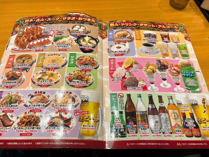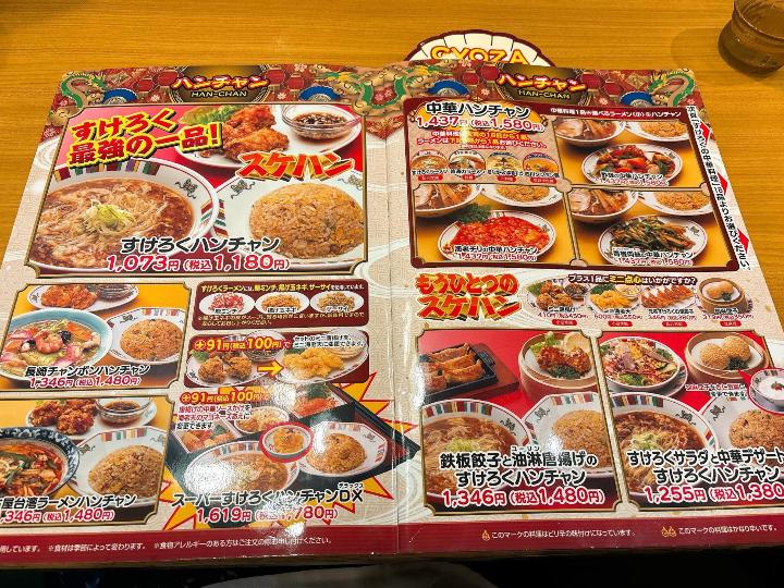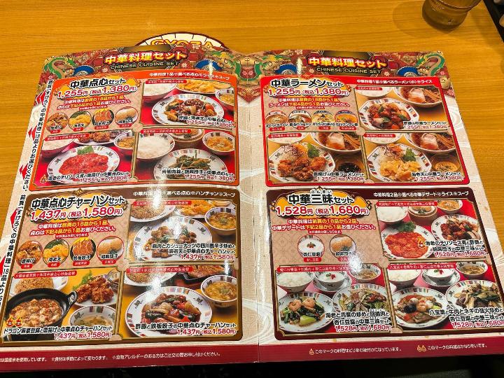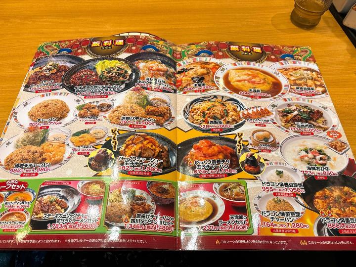 席に案内されてメニューを開くと、ラーメンや定食、チャーハンなど、中華の定番メニューが並んでいます。