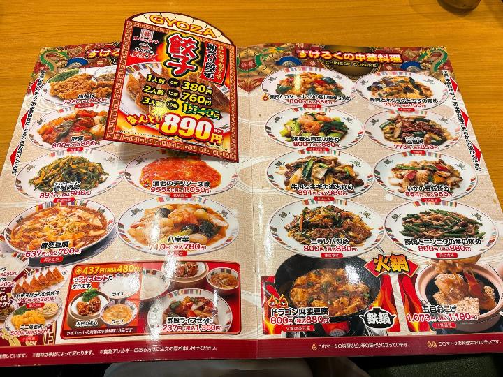 すけろくのメニューはこのようになっています。(一部)