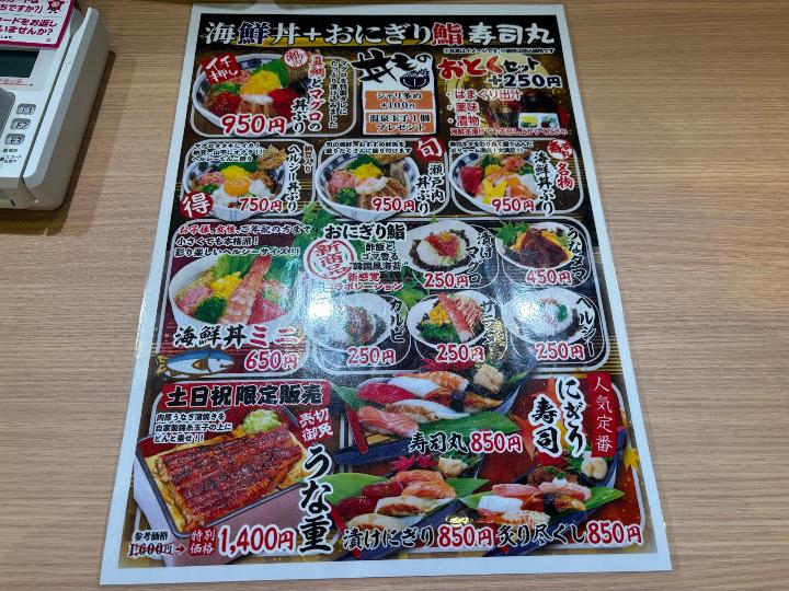 海鮮丼+おにぎり鮨寿司丸ゆめタウン高松店のメニューはこのようになっています。(一部)