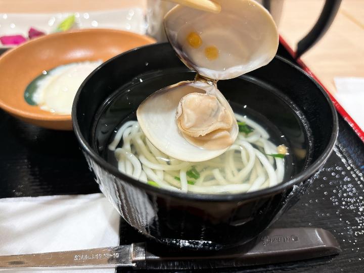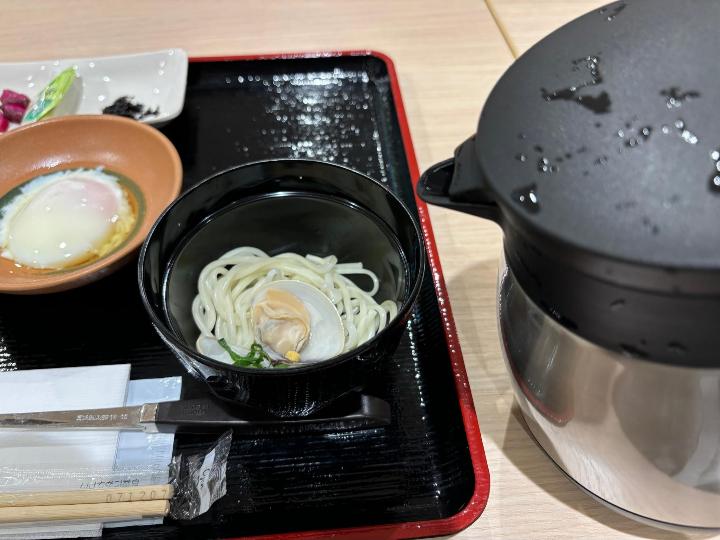 おとくセットには、はまぐり出汁・薬味・漬物が付いています。