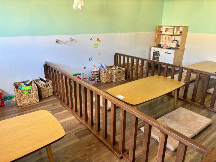 おもちゃが置かれていて、小さな子どもが遊びながら過ごせるのが嬉しいポイント。