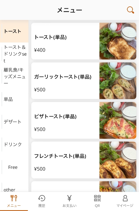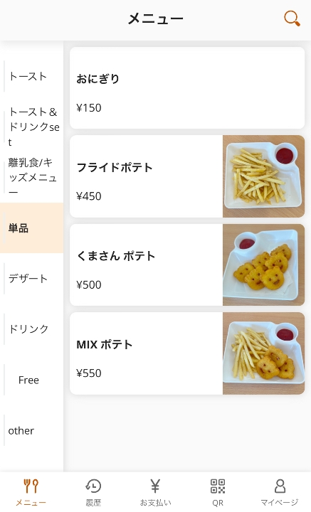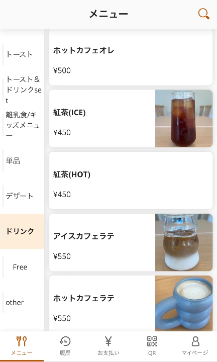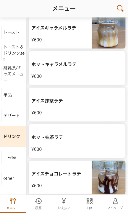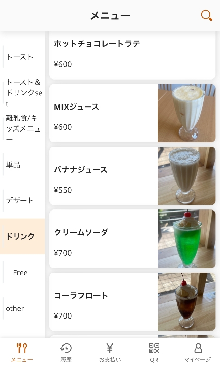 注文はモバイルオーダー制で、スマートフォンからスムーズに注文できます。