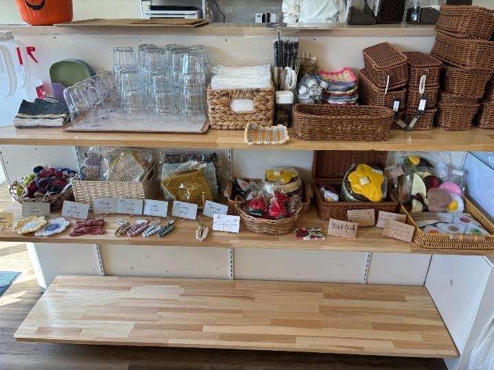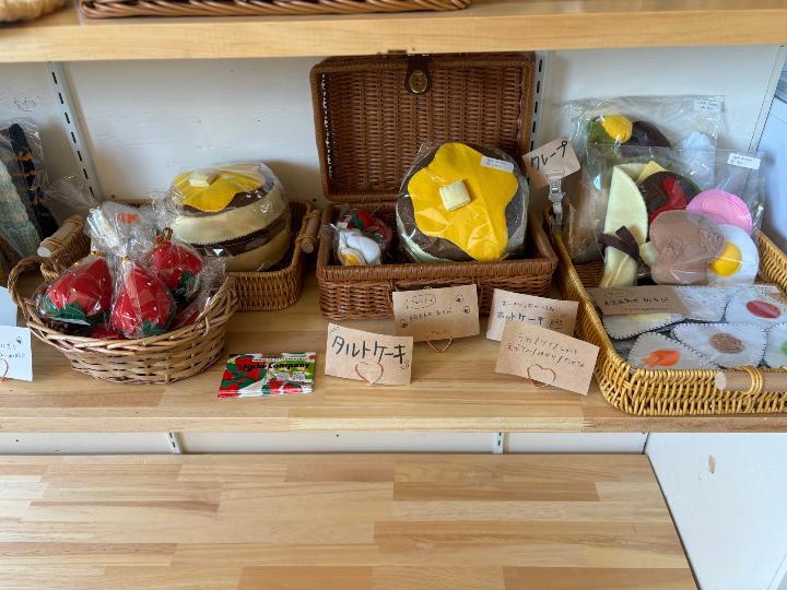 店内では、ヘアアクセサリーやフェルトで作ったおもちゃなどのハンドメイド雑貨も販売されていました。