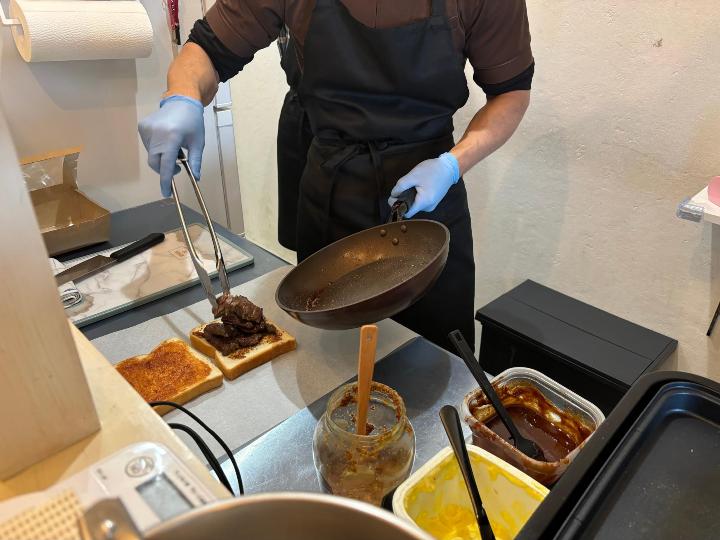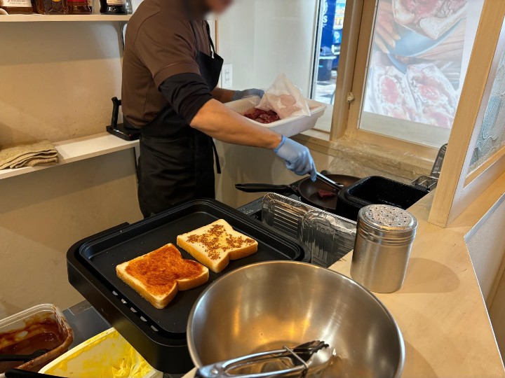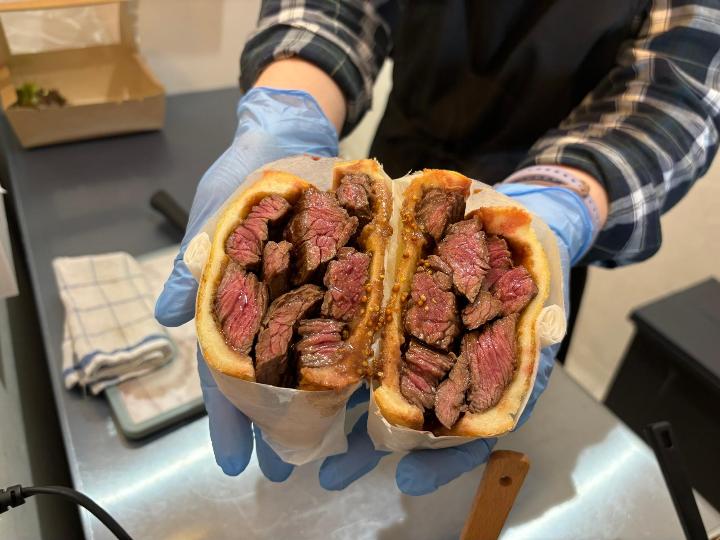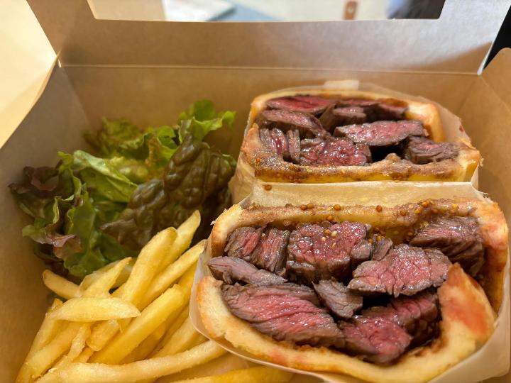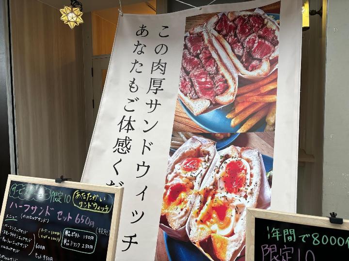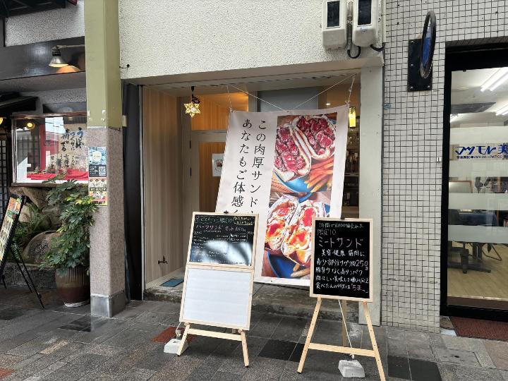 2025年11月22日にライオン通り商店街の一角にオープンした“映え断面ミートサンド”を楽しめるお店です。