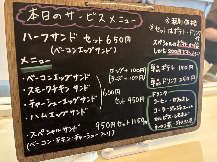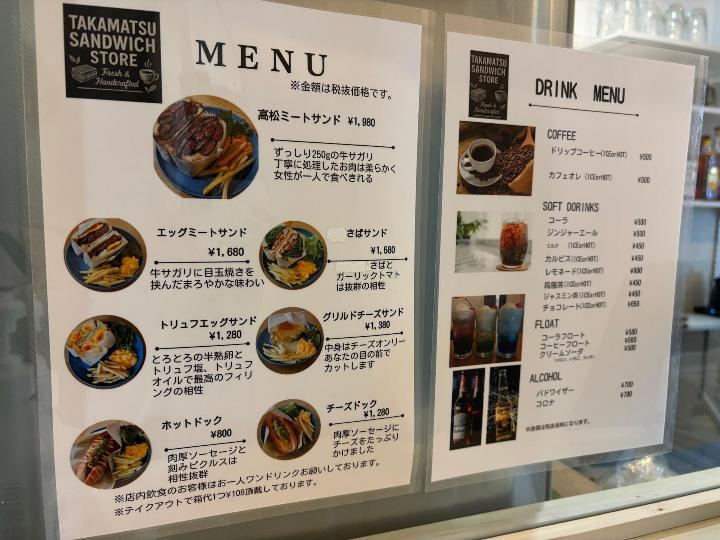 高松サンドウィッチストアのメニューはこのようになっています。(一部)