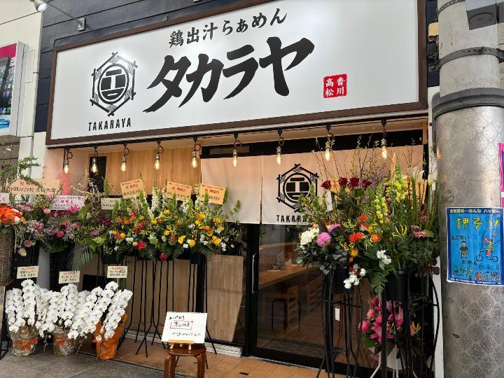 もともと塩上町で営業していた「ラーメンとカレーの店 タカラヤ」が、丸亀町商店街へ移転し、鶏出汁らぁめん専門店として新しくオープンしました。
