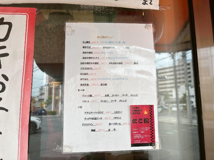 たこ焼たこ松のメニューはこのようになっています。(一部)