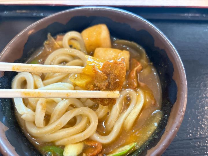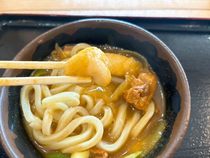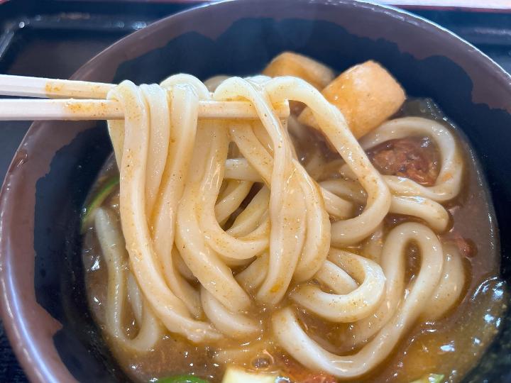 麺はもちもちとした食感で、とろみのあるカレーがよく絡んで美味しかったです。